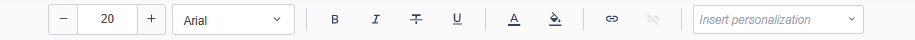 Ten slotte heb je nog de mogelijkheid om een link toe te voegen op een selectie tekst en kan je met behulp van de keuzelijst gemakkelijk een placeholder invoegen om je e-mail te personaliseren.